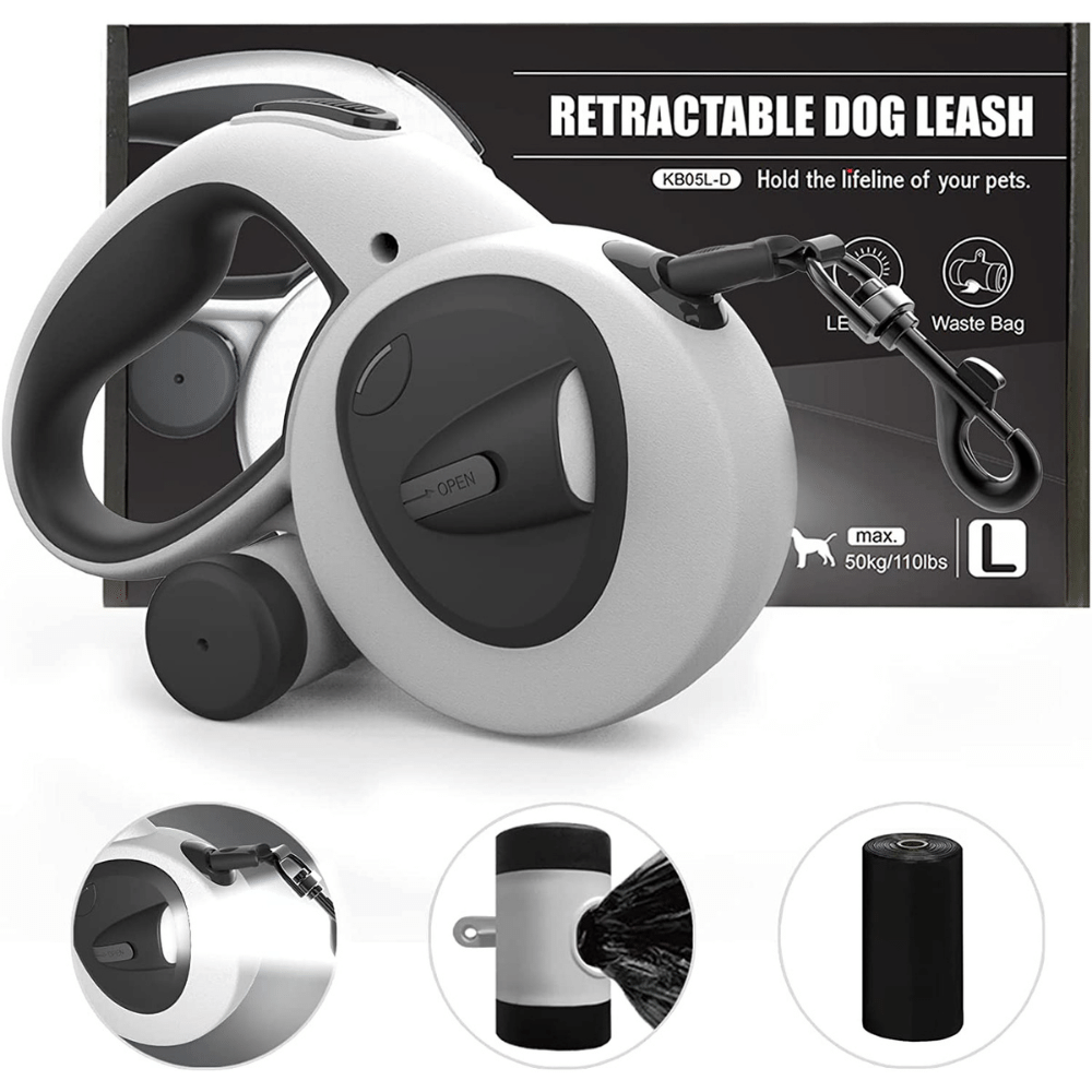 The HCY&WLD Upgrade 4-in-1 Retractable Dog Leash also comes with a removable integrated poop bag dispenser. This makes it easy to clean up after your dog while you're out on a walk, and you won't have to worry about carrying around a bulky poop bag dispenser.
