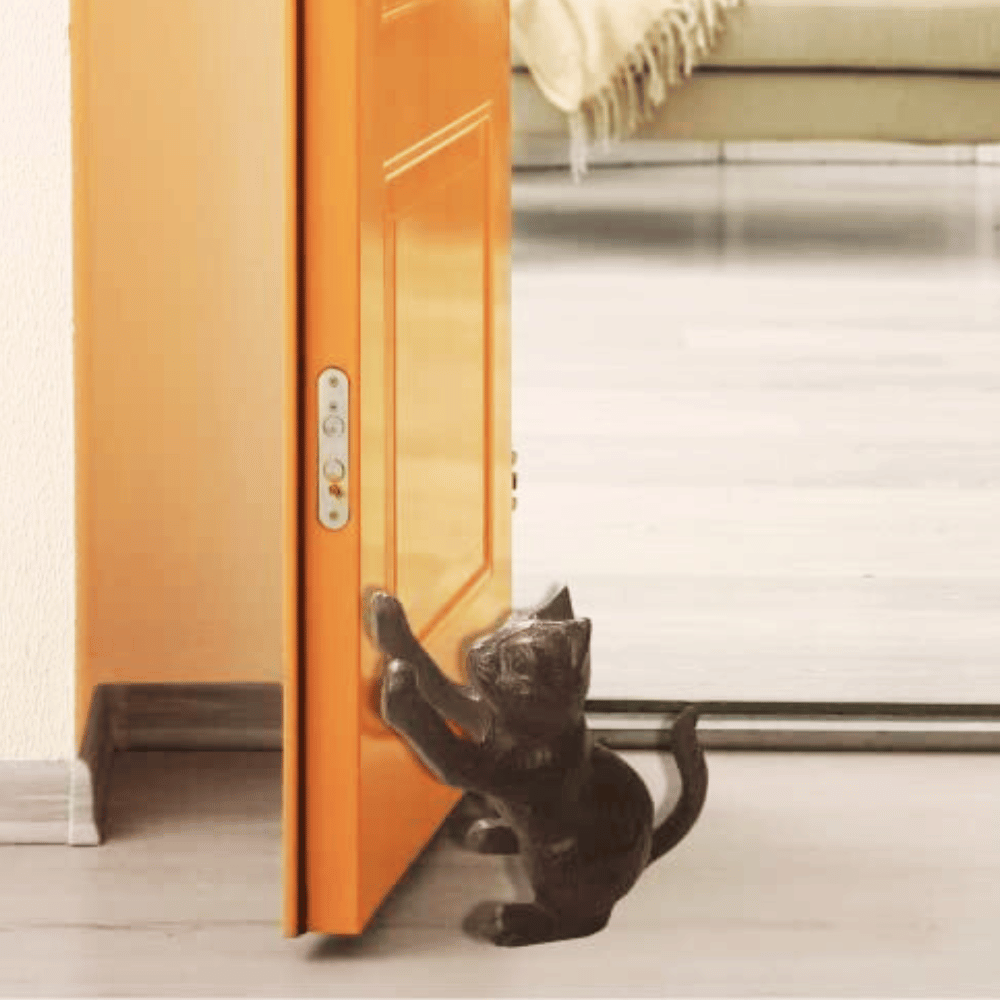 Metal cat doorstoppers are heavier and more permanent types of doorstoppers. Often crafted from brass or cast iron, they provide a more refined and sophisticated look to your home decor.