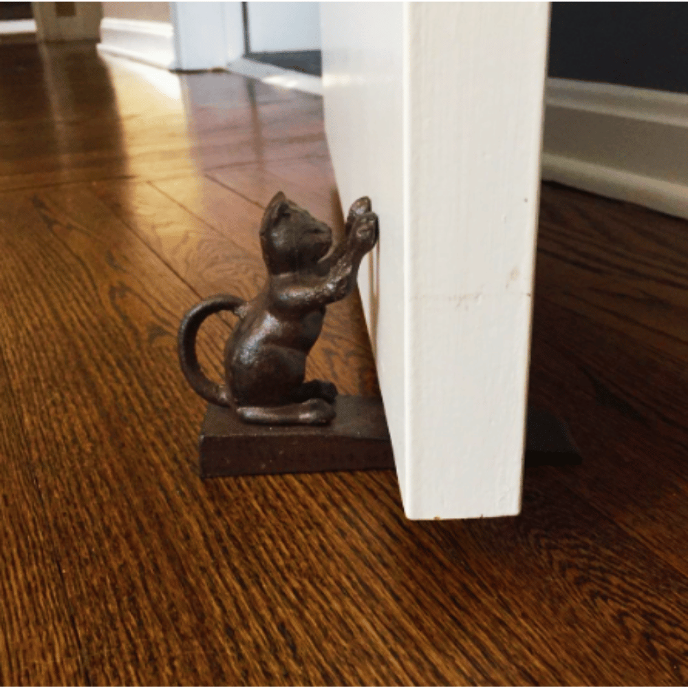 Comfify Vintage Cast Iron Cat Door Stop Wedge is the perfect hands-free convenience for high-traffic doors, including kitchen-garage doors, front doors, bedroom doors, and more. It measures 4"High x 6"Length and the antique coating protects it from rust and wear.