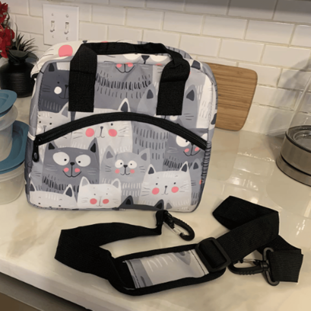 With its stylish cartoon cat design, this lunch bag is sure to stand out among the crowd. It also makes a great gift for coworkers, roommates, college students, and more.