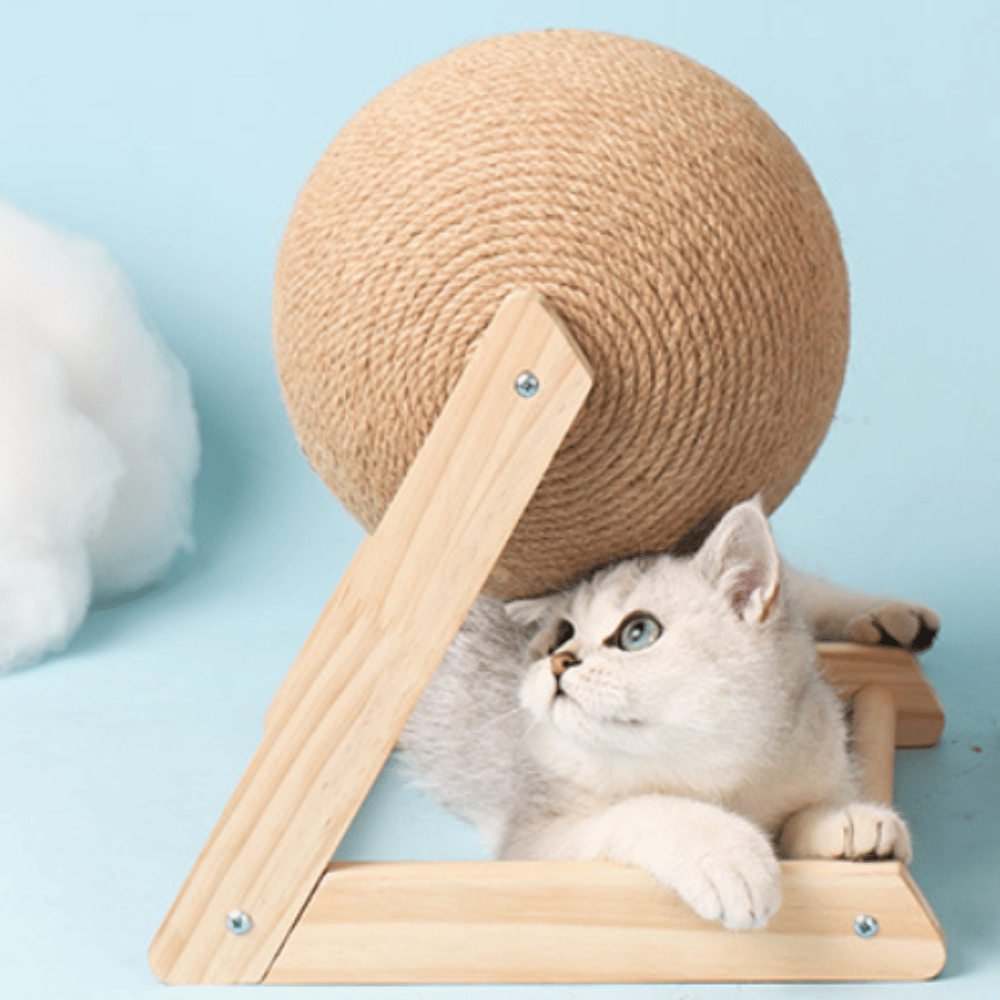 Constructed with durable sisal rope and solid wood, it can withstand even the rowdiest of playtimes. Give your cats the ultimate playtime experience with our reliable and long-lasting cat scratching ball.