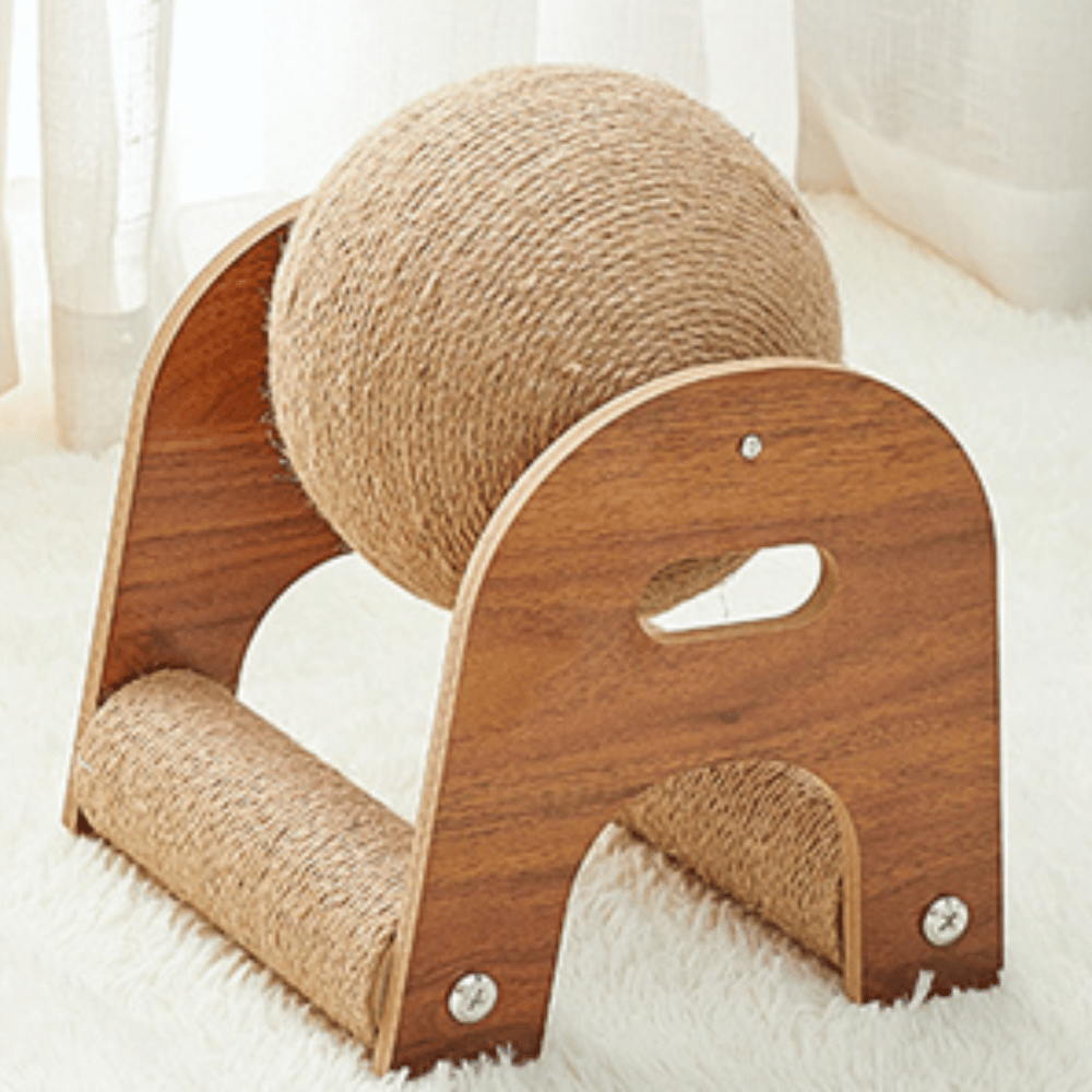 This unique toy is made of durable solid wood and a natural sisal ball, protecting your furniture from scratching and giving your cat an interesting toy to play with. The hollow design is perfect for cats' natural curiosity, and the spinning sisal ball is sure to keep their attention.