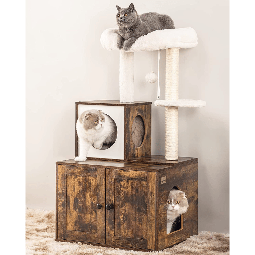 FourFurPets Multipurpose Cat Litter Box Enclosure with Cat Tree and Condo