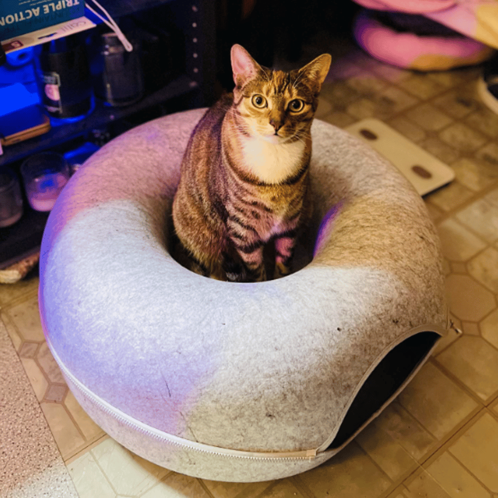 The Cat Tunnel Bed is designed with your cat's safety in mind, with a lightweight, durable construction that won't collapse or pinch your cat's tail. The tunnel is also lined with a soft, breathable fabric that helps keep your cat cool and comfortable. Plus, the tunnel is easy to clean, so you can keep your cat's bed looking and feeling like new.