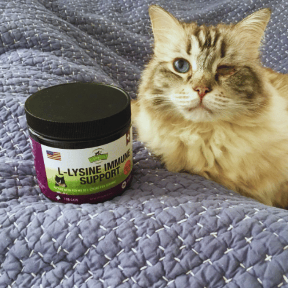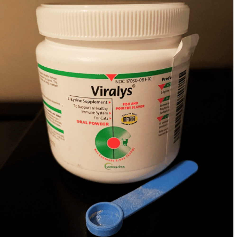 With 900 mg of l-lysine hydrochloride per scoop, it's a safe and easy way to give your cats the immune system support they need. Not only does it help treat feline herpes, herpesvirus, cough, sneezing, runny nose, congestion, and colds, but it also helps to prevent and treat cat eye infections.