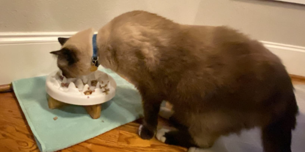 If you are worried your cat is vomiting too frequently, a Slow Feeder Bowl can be a great solution. But, remember to always work with a veterinarian to determine the underlying cause of frequent vomiting.