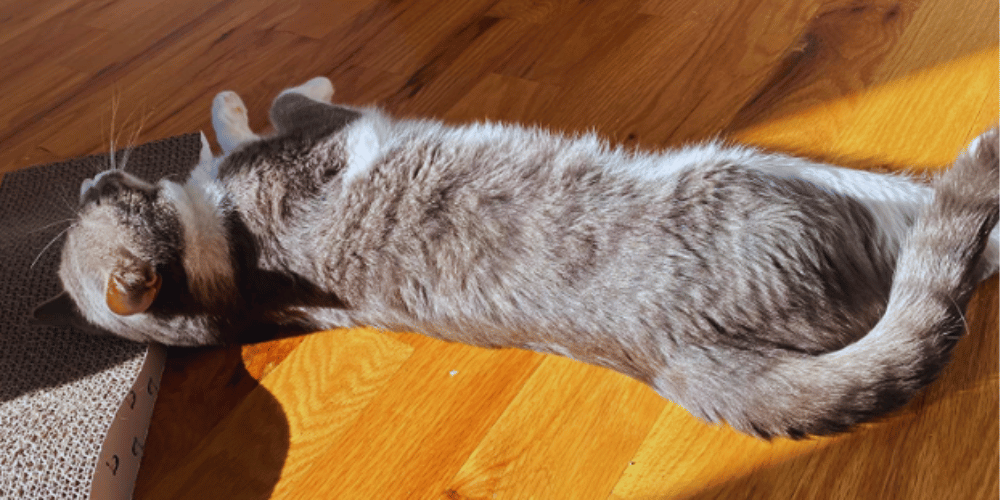 Giving a cat a place to scratch means allowing them to express their instinctual need to scratch, providing much needed enrichment for an indoor cat's life.